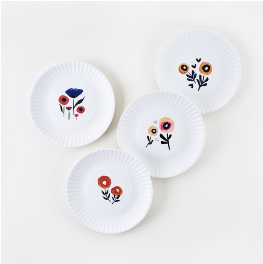 Bring the garden indoors with the Poppy Plates! They come in a set of four, with each plate having a different design. Have a complete dish-ware set by adding the Poppy Bowls! Choose from two sizes.