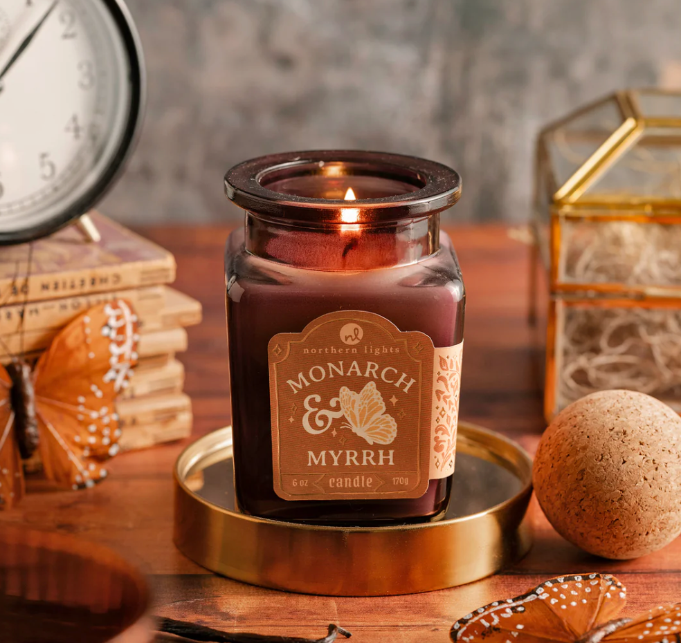 An all new candle collection inspired by the whimsical allure of a cabinet of curiosities and the eclectic, rare collectibles within. Perfect for those who delight in the unusual, the unexpected fragrance blends transform your space into a sanctuary of discovery and adventure. Each candle is topped with a cork ball lid and features labels adorned with hand-drawn illustrations and metallic highlights inspired by antique books.