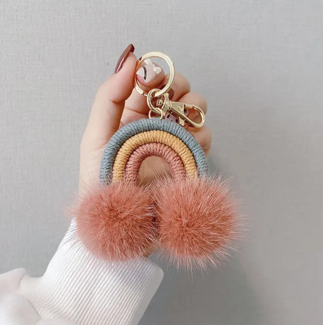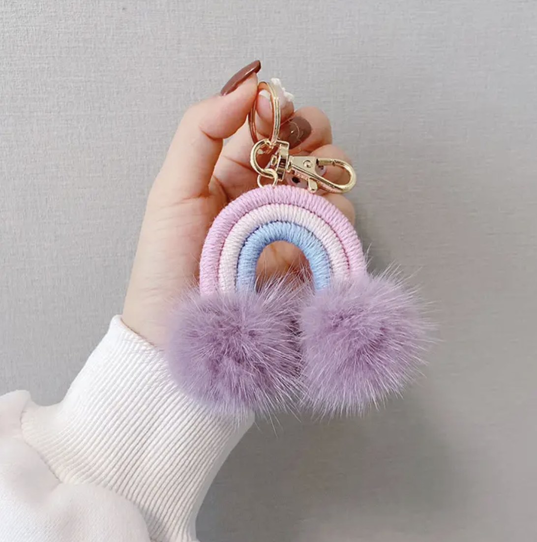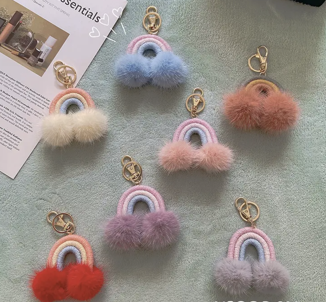 Rabbit Fur Rainbow Keychain