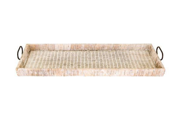 This large decorative rattan tray is sure to spruce up any space! Oversized at 38” long, it would look great on a coffee table, extra-large ottoman or centered on your bed at a slight angle with a book small flower vase and special coffee cup.