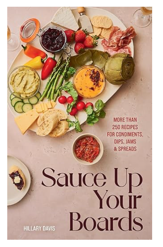 Sauce Up Your Board by Hillary Davis is a must-have cookbook of over 250 super-simple, healthy recipes for condiments to complement everything from brunch to buffets, family dinners, barbeques, picnics, holidays, and special occasions presented in a chic and sophisticated way. A condiment board is set in the middle of the table, on a counter, or on picnic blanket, and holds a selection of condiments for tasty embellishments for the other food choices. Much like charcuterie boards, condiment boards gather together in one place a variety of offerings for people to enjoy and share—think updated and upscaled lazy Susans. Or, you can add little pots, sprinklings, smears, and drizzles of these flavorful additions to your cheese, meat, fruit, vegetable, or sweets boards.