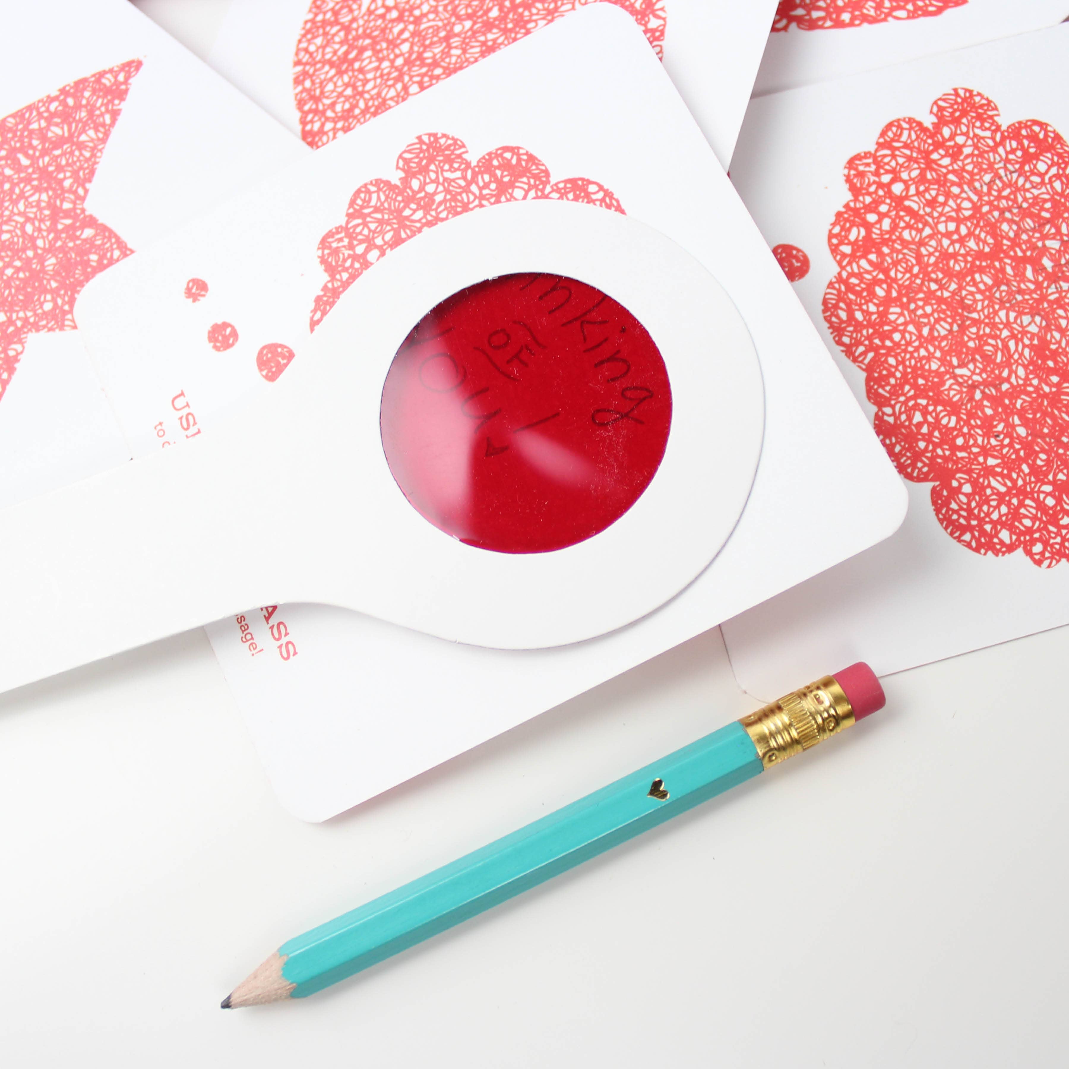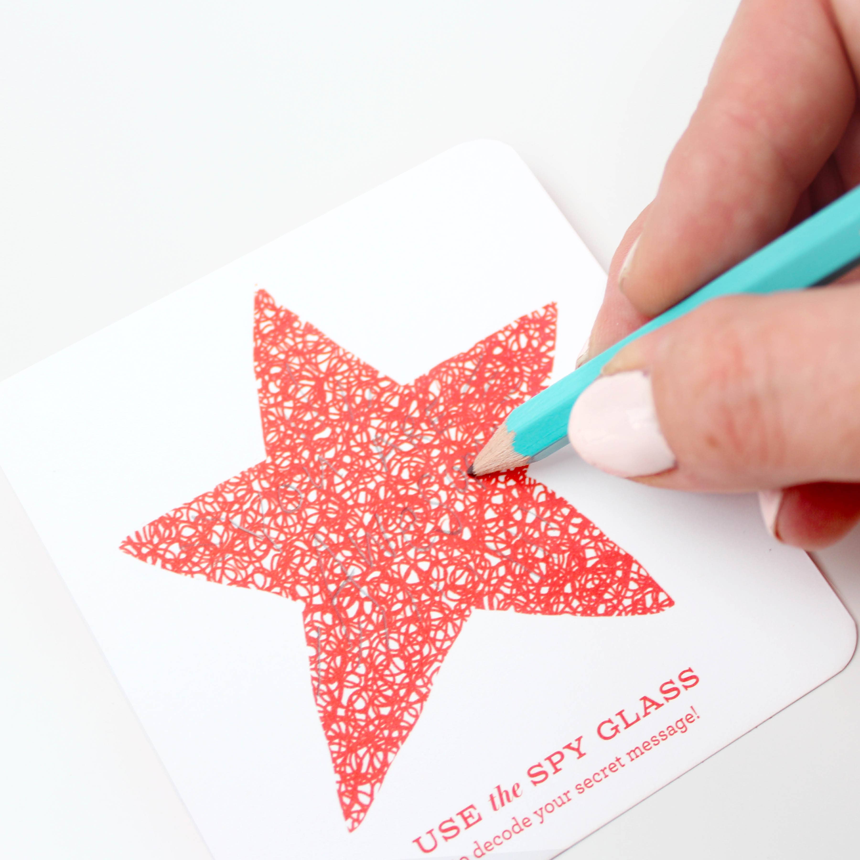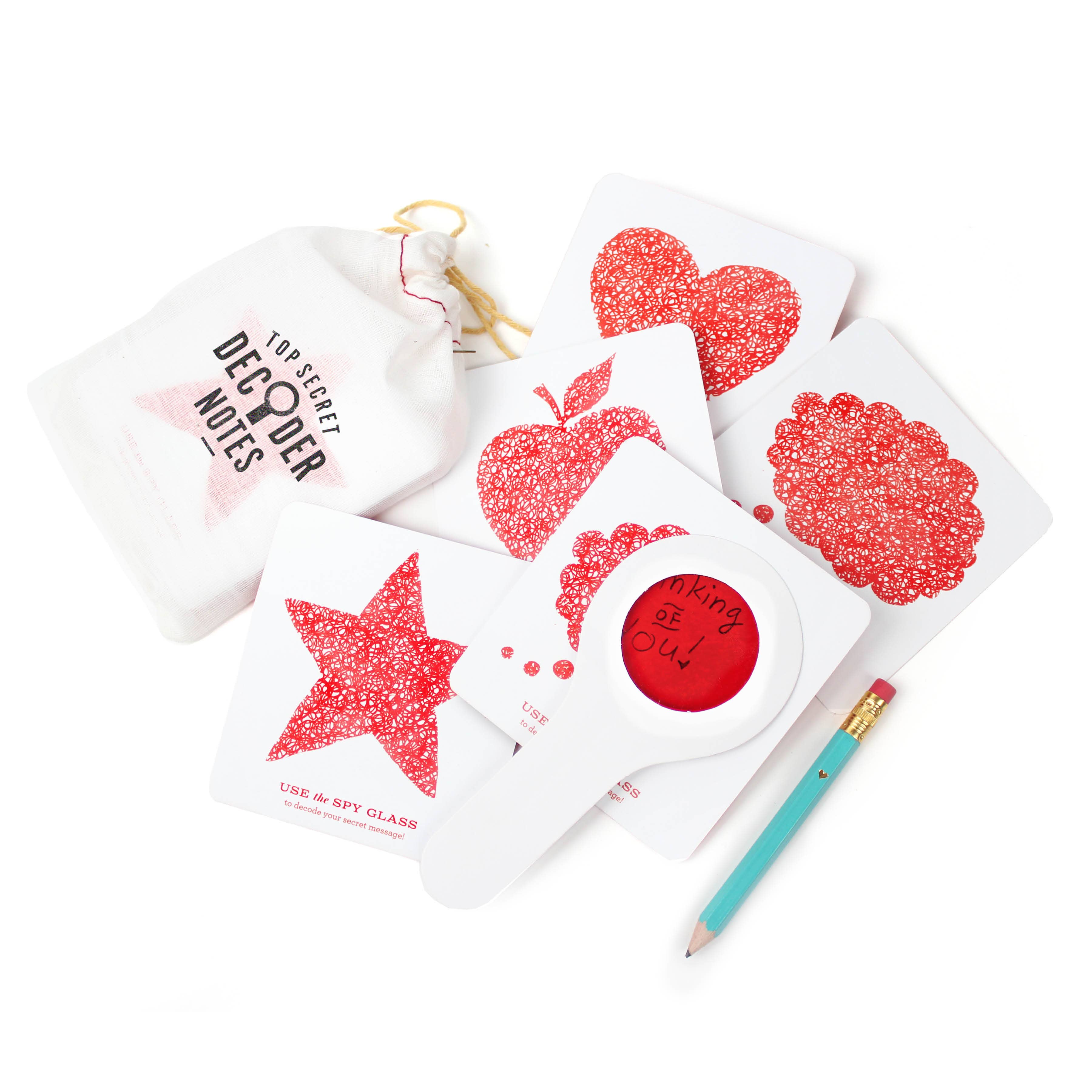 Hide a secret message that can ONLY be seen by looking through the decoder lens (included with card)! These new Decoder Notes are SO much fun for all ages. Write lightly with a pencil or blue pen, then peek through the red decoder lens to reveal your hidden message! Instructions and glasses are enclosed. These tiny notes are the perfect size to slip into a lunch bag or pocket of someone special.