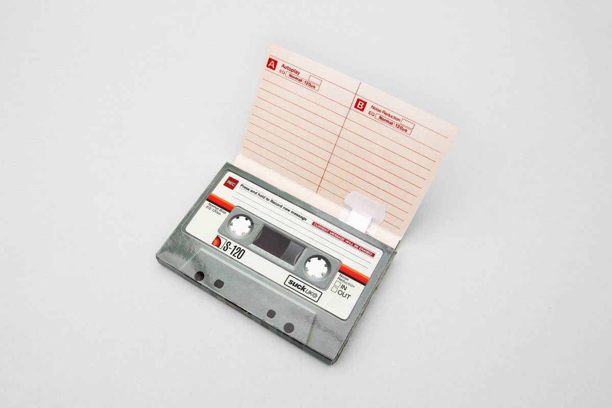 When a hand written message doesn’t quite cut it, send a sound recording in the form of a retro mixtape. Record for up to two minutes, handwrite a message, seal with the included sticker and send off to the lucky recipient. Your message will play automatically when the card is opened. Re-recordable and endlessly re-usable so you can pass messages back and forth forever.