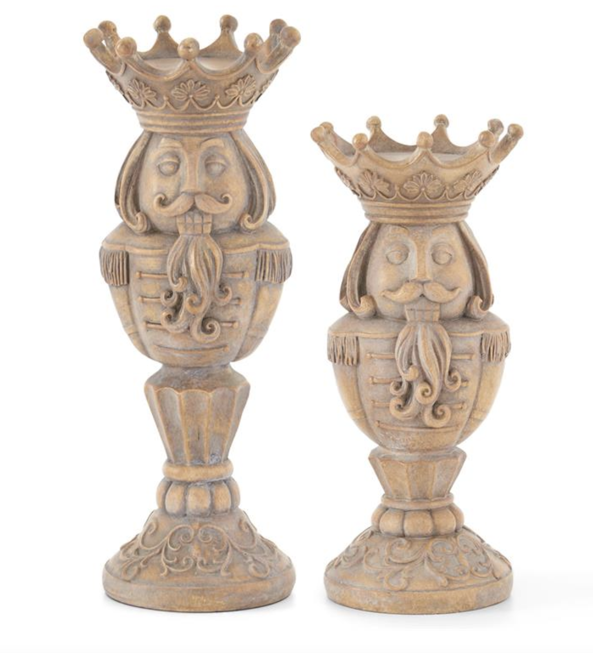 These nutcrackers are the perfect candleholders for a silent night! Item Dims: Grad. Sizes 12.5″H x 4.625″Dia. Major Materials: 52% Natural Stone Powder 48% Polyresin