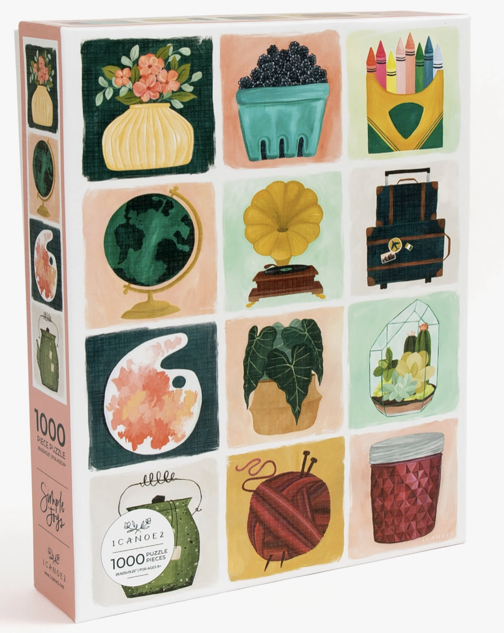 Featuring a variety of hand-painted illustrations, our Simple Joys Puzzle makes a great gift for a friend or loved one who enjoys the little things in life. From the plant- and nature-lover or floral bouquet admirer, to the creative artist, painter, or music record collector, to the crafter, baker, or traveling adventurer, this thoughtful puzzle features one-of-a-kind icons that remind us of life’s simple joys.
