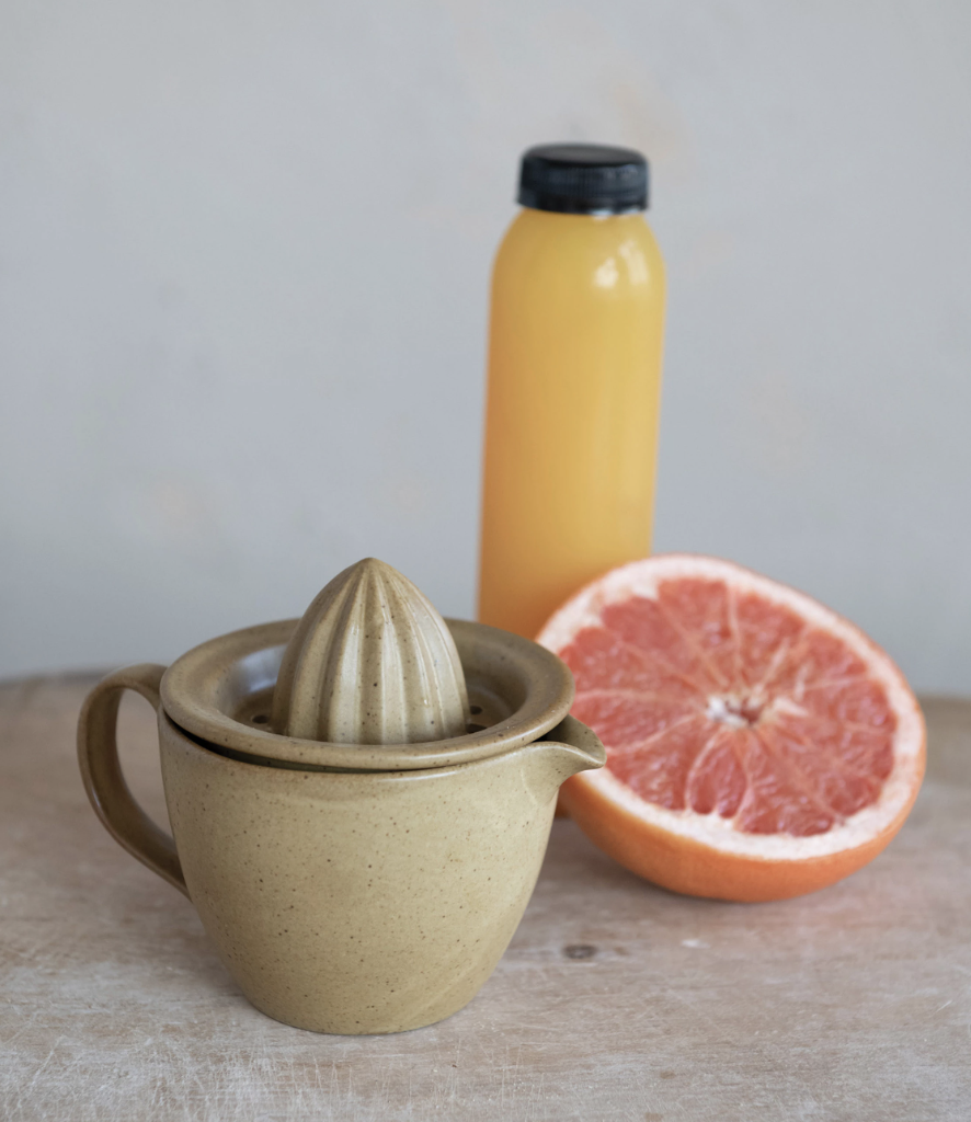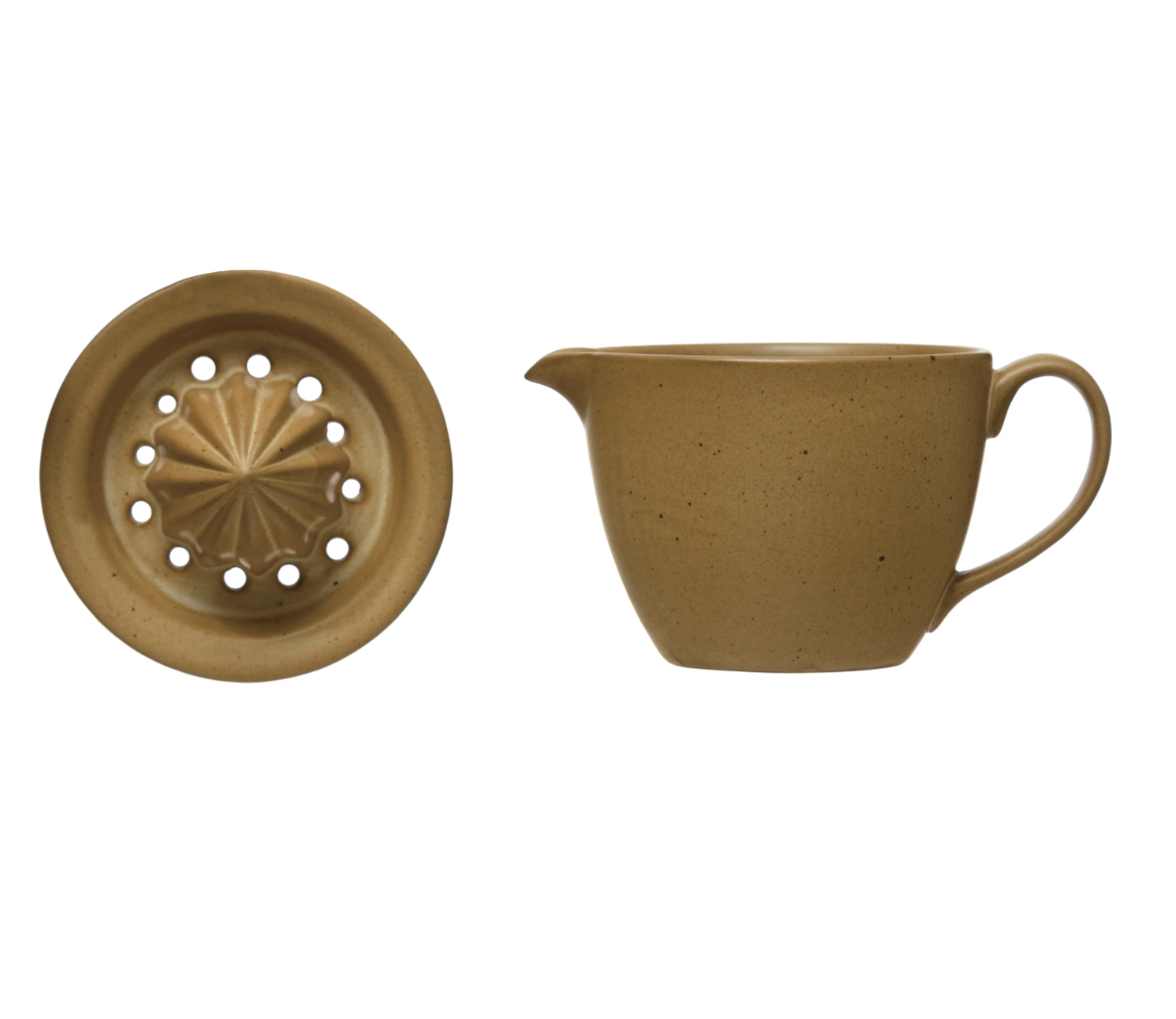 5-3/4″L x 4-1/4″W x 4-1/2″H Stoneware Juicer, Reactive Glaze, Matte Dijon Color (Each One Will Vary)