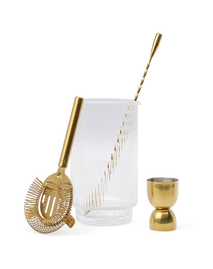 This handsome bar tool set serves up all you need to make the perfect cocktail or mocktail! A modern addition to any home, it just might impress friends, too.
