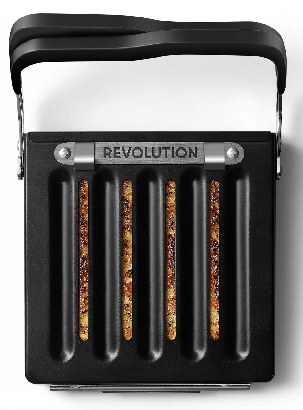 The Revolution Toastie Press™ allows you to create perfectly toasted sandwiches (aka: “toasties”), quesadillas, melts, and more in your toaster!