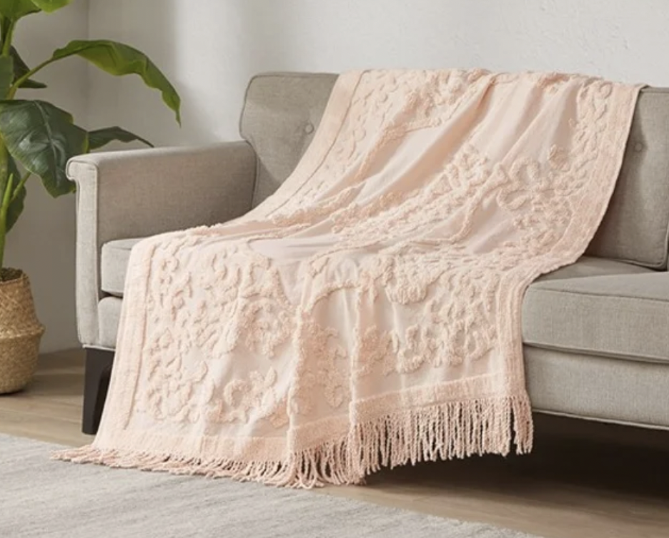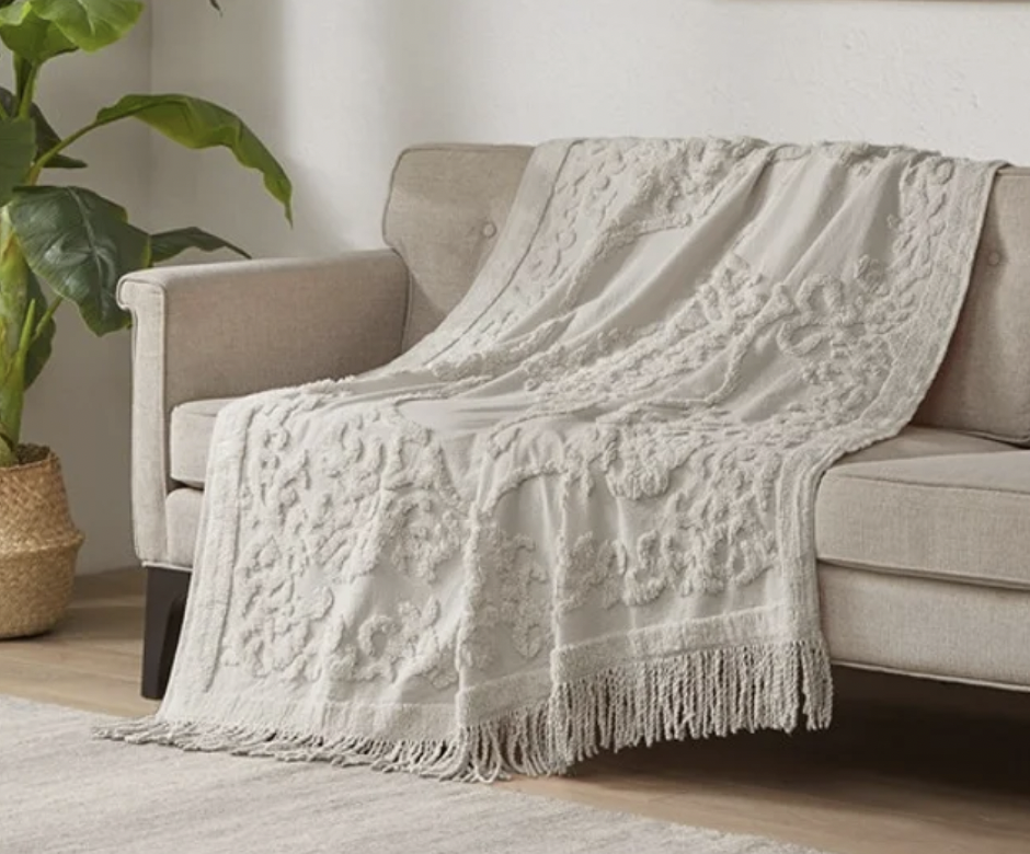The Madison Park Chloe Cotton Tufted Throw provides a luxurious addition to your home decor. This throw flaunts an elegant tufted chenille design with a 4-inch fringe on each end, for a beautiful bohemian look. The ultra-soft 100% cotton construction creates a light natural feel that’s perfect for all seasons. Machine washable, this cotton tufted throw is great for layering across your bed or for simply bundling up in to stay warm and cozy.