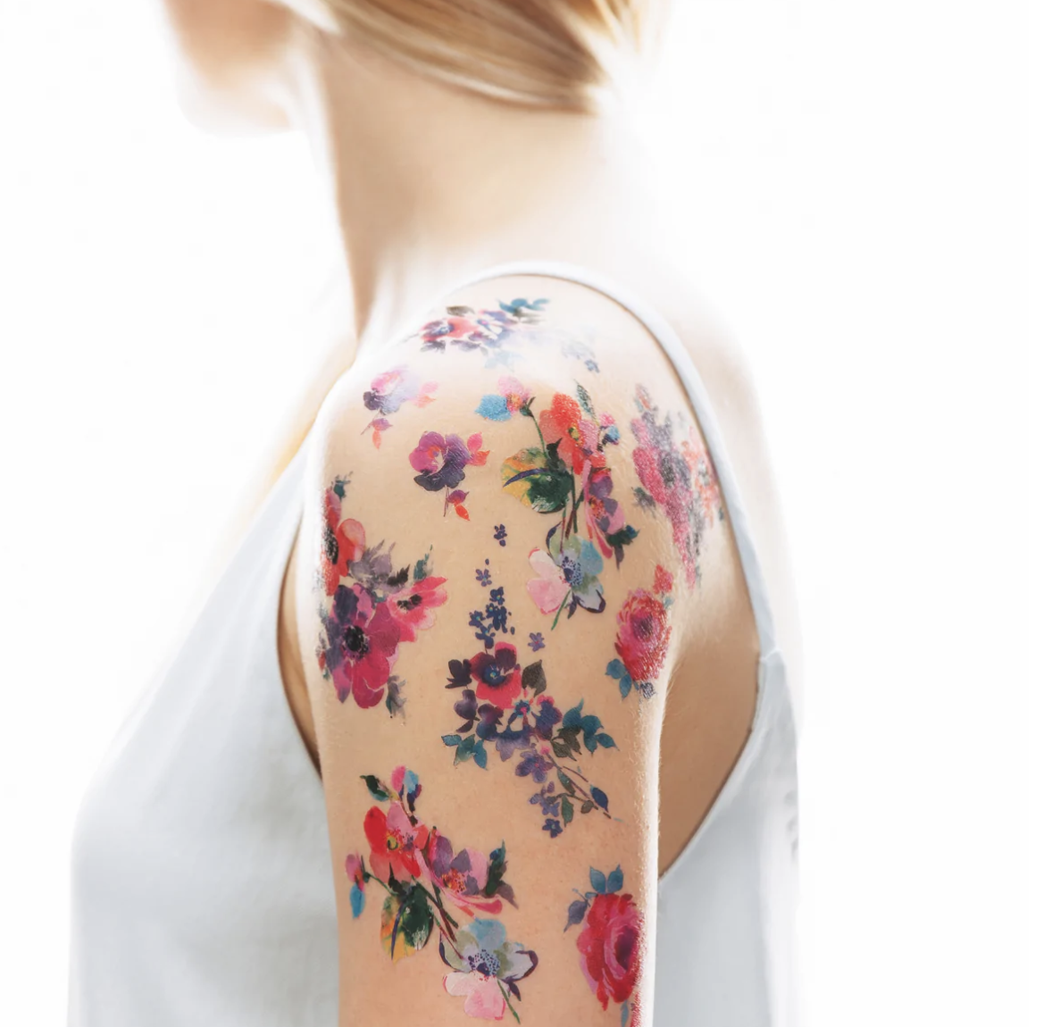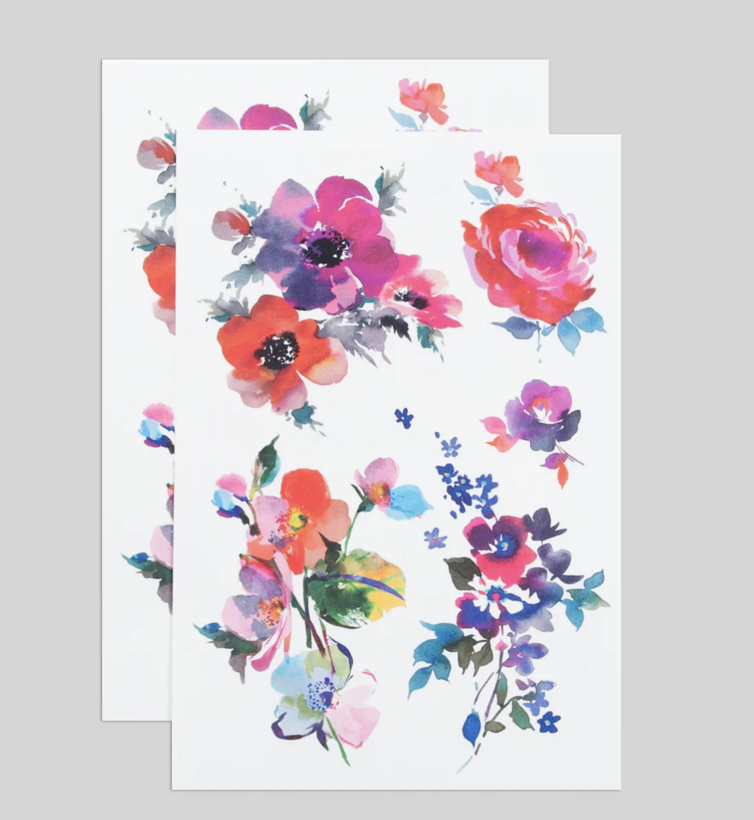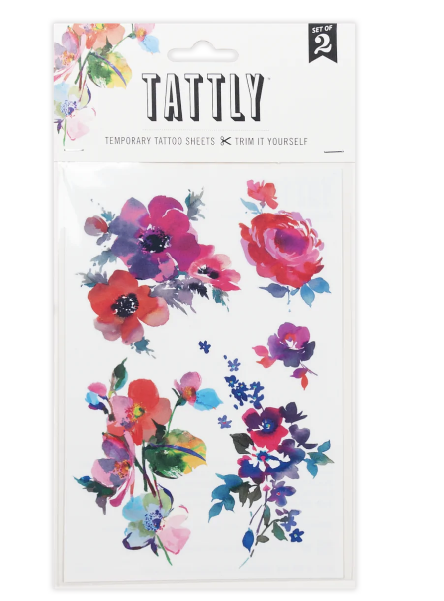 Watercolor Florals Tattoo Sheet, Set of 2