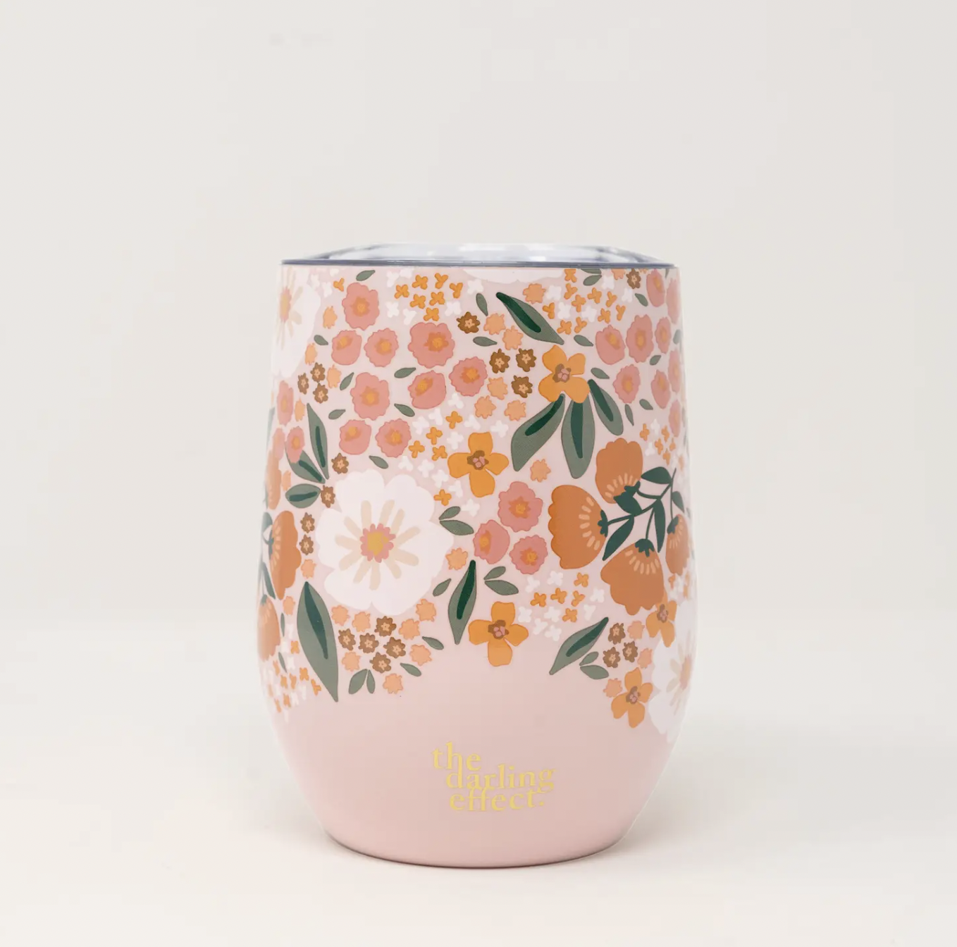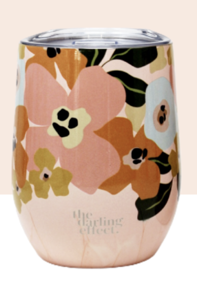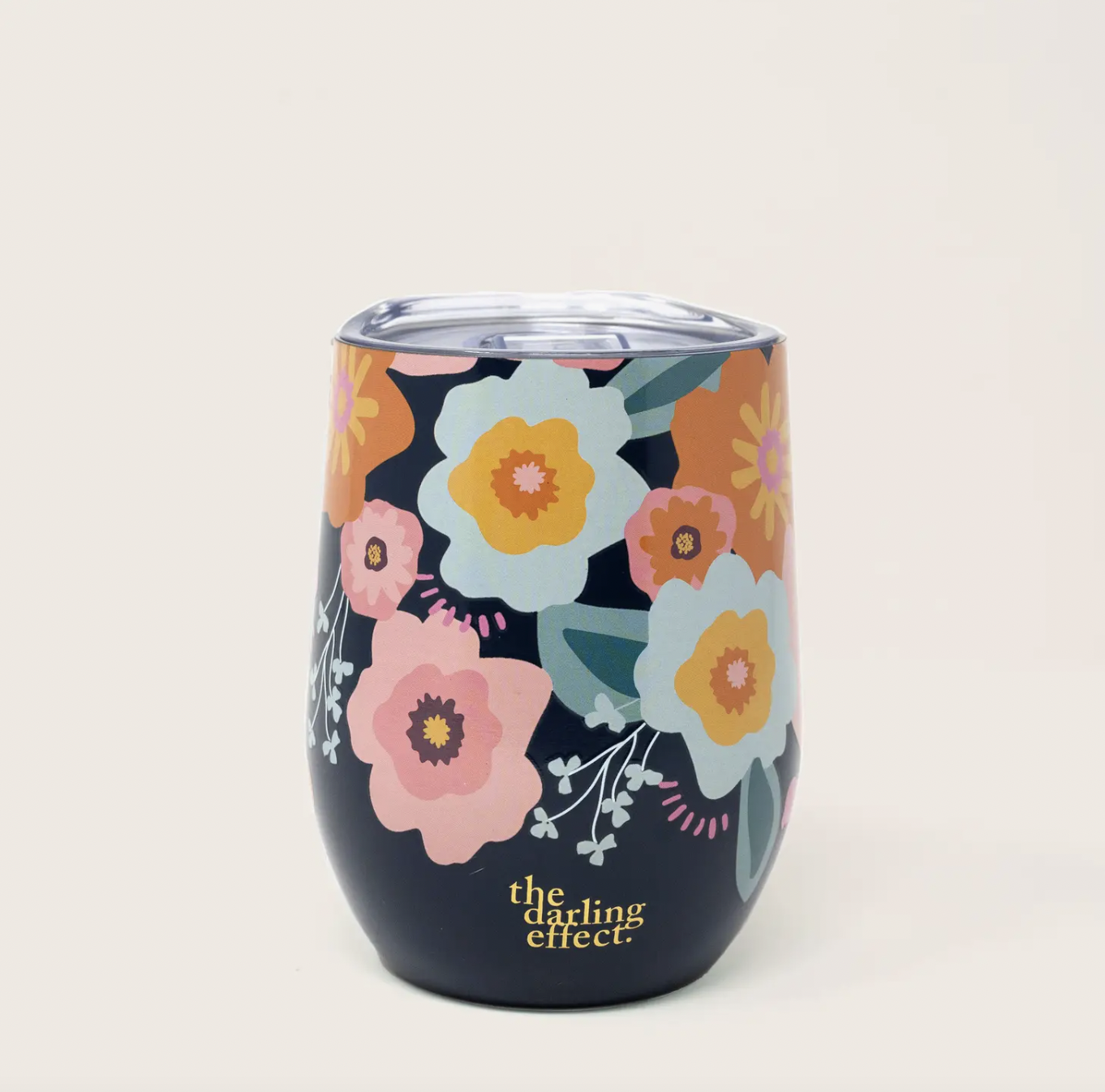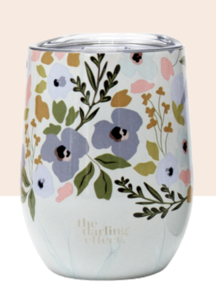 Your new must-have for the big game, pool party, BBQ, the beach, camping trip, or chill night. Holds up to 12oz of your favorite beverage, and keeps your drink hot or cold. These never-before-seen custom designs are sure to be a hit! Our five patterns are Everlasting Blooms (white), Lil’ Floral Delight (pink), Sweet Meadow (light pink), All Day Dainty (blue), and Bright & Bloomy (dark blue). Due to the handmade nature of our product, design placement will differ with each wine tumbler. Cheers to elevating your drink. -Holds up to 12oz of your favorite beverage -Sliding, spill resistant lid -Eco-friendly -Sweat proof -Stainless steel insulated -Triple-walled -BPA Free Hand-wash recommended
