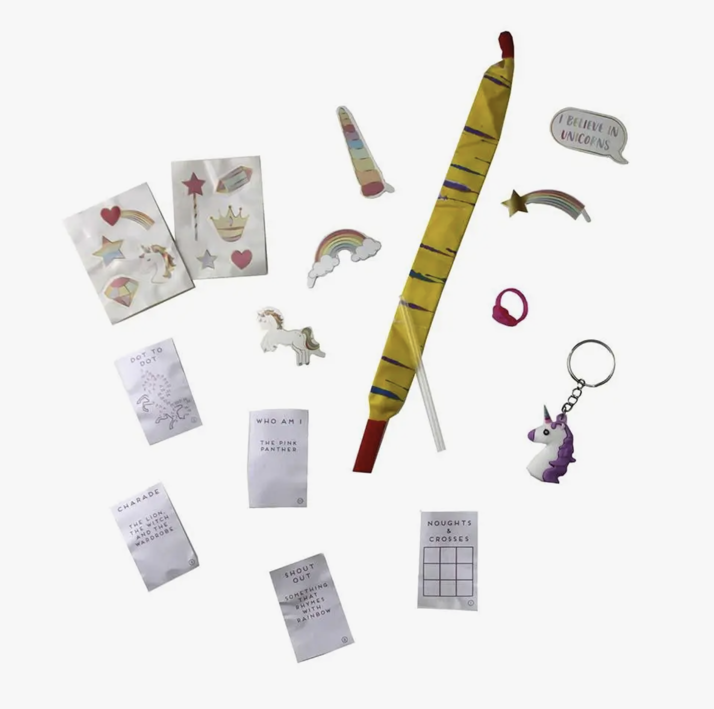 Unroll the unicorn by Talking Tables. Much like pass the parcel, unravel layer by layer as you pass around the table, amusing your guests with the little gifts inside.