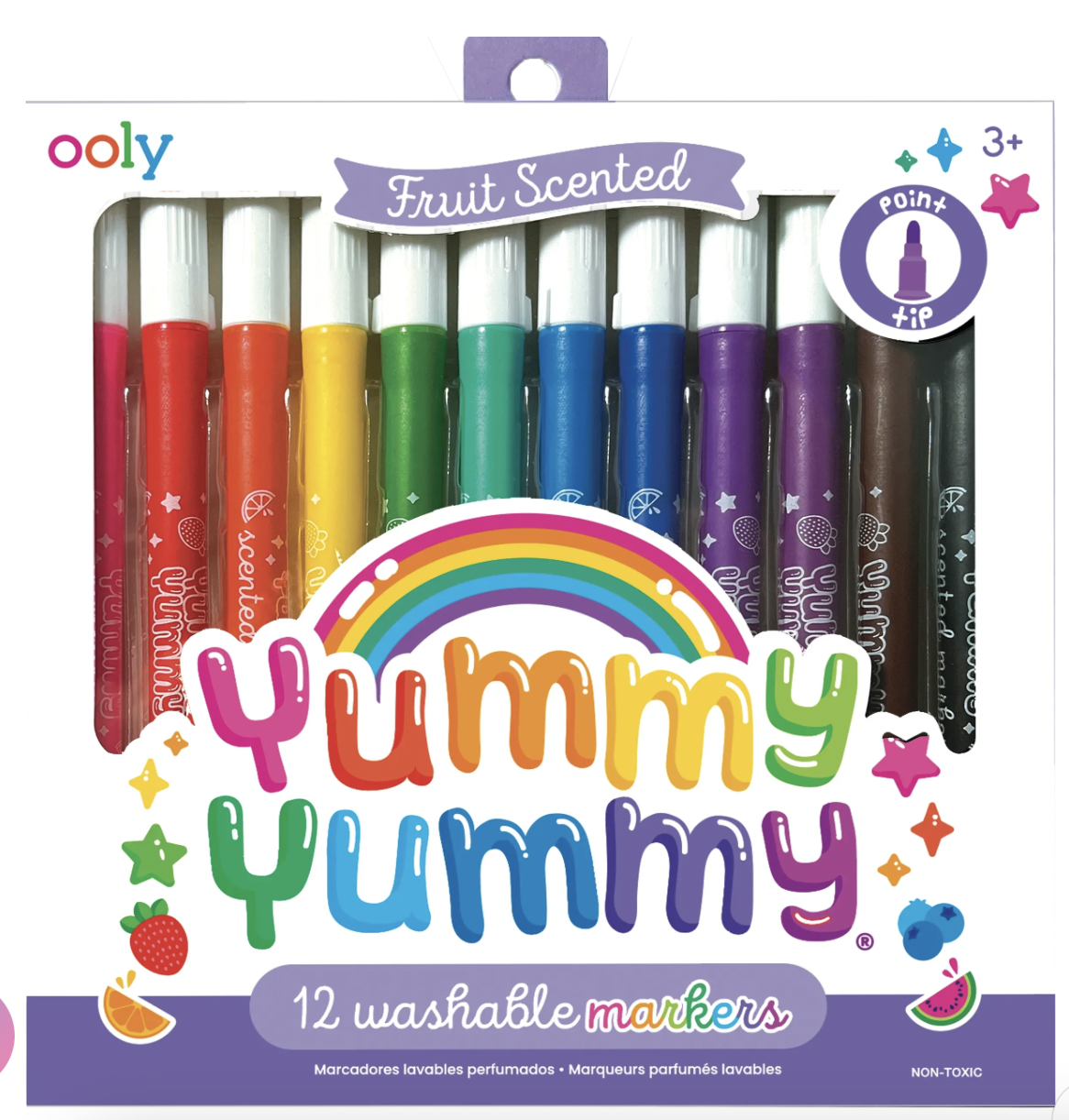 This set of 12 washable markers includes every color in the rainbow and a pointed tip for great functionality. But what will absolutely win you over is their yummy fruit scented goodness! Each scented marker boasts a sweet fruity smell, so using them is always a delicious treat!
