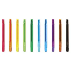 Color and draw with a set of twist up crayons that smell like unforgettably delicious fruit. Yummy Yummy scented twist-up crayons are a set of 10 scented crayons encased in a plastic barrel; just give it a twist when you need more crayon to color with. The durable barrels are a great way to keep little hands clean and protect your crayons from accidental breakage.