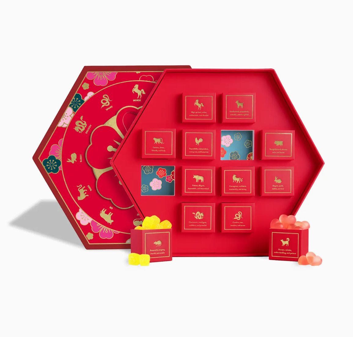 Explore the flavors and personality traits of each zodiac sign with this special-edition Candy Tasting Collection. Inside, discover 12 unique candies crafted by artisanal candy makers from around the world. There's no sweeter way to welcome the Year of the Horse in full bloom.